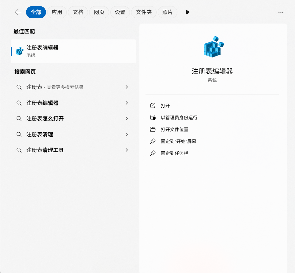 1.搜索注册表并打开