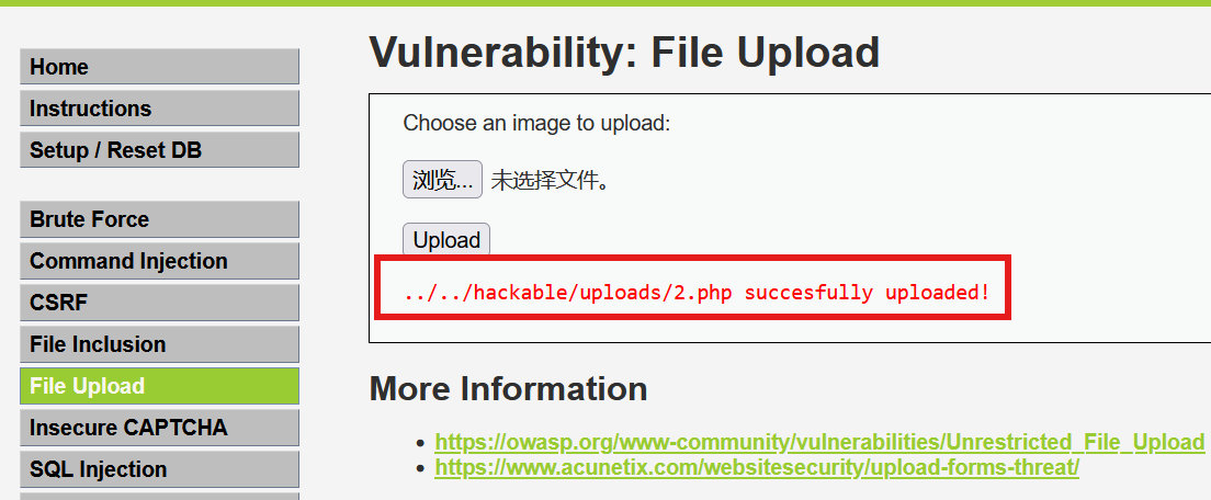 - 这里你可将等级换成low级别访问文件,也可以不切换(那就要靠路文件包含关卡的过滤了)