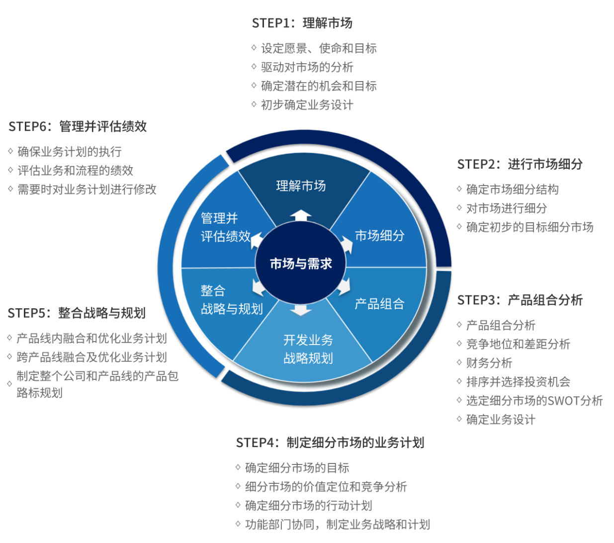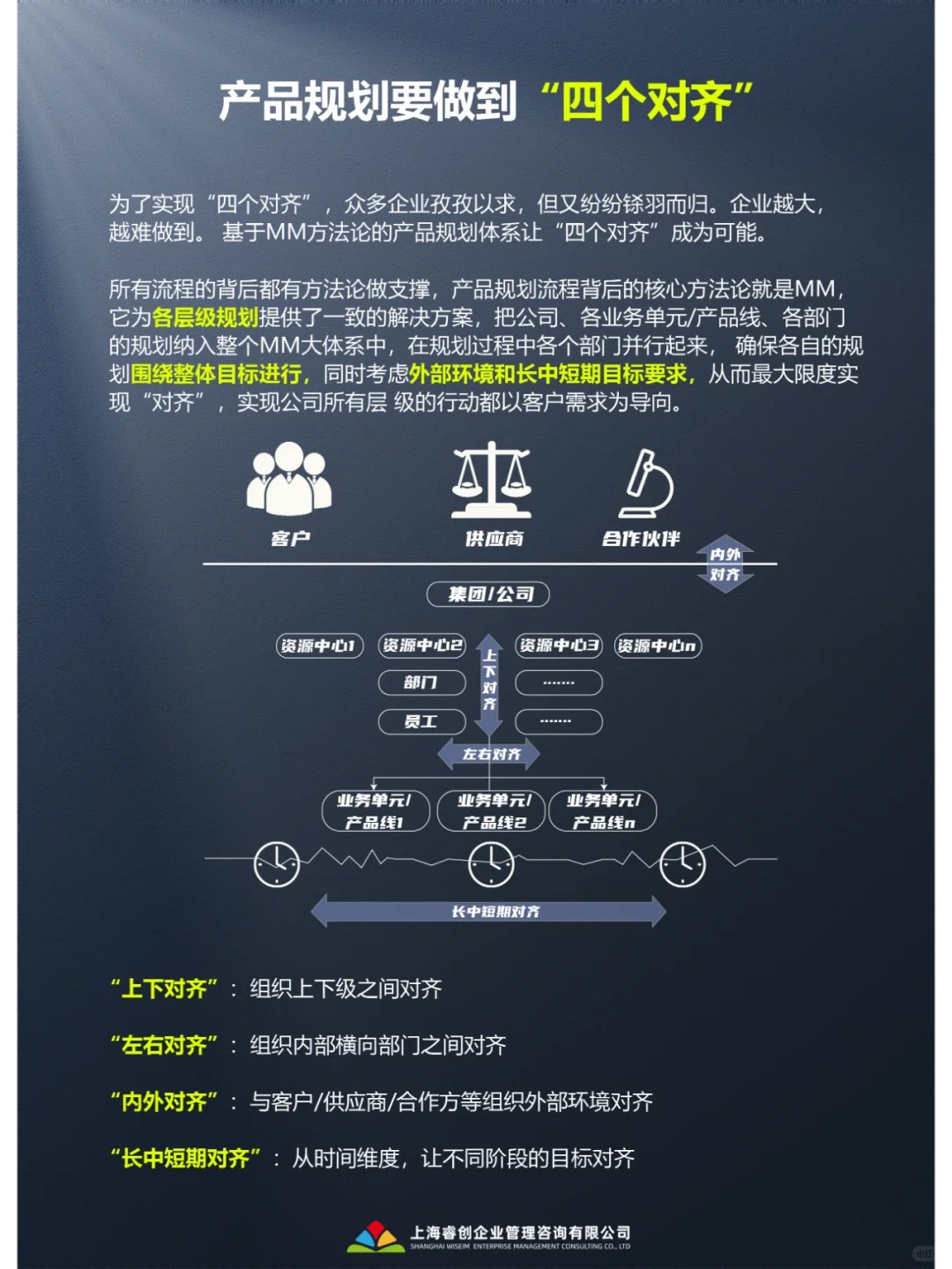 它提出了“规划四个对齐”——上下、左右、长短期、内外部全方位协同,并在此基础上,形成从宏观环境识别到客户需求洞察、从市场细分到产品路径设计、从能力匹配到平台技术规划的全流程方法论。