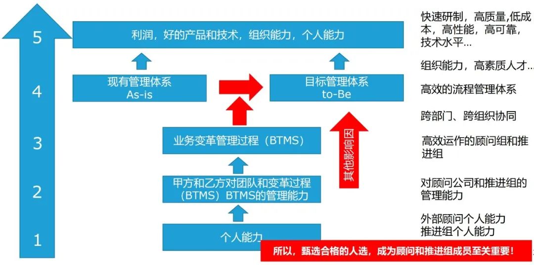 但是,即便有了变革管理体系(BTMS),谁来管理和运作这个体系?如何才能运作好?这就需要构建一套对BTMS进行管理的流程、组织和绩效体系!背后是要物色能够对这个体系进行管理的体系和个人。