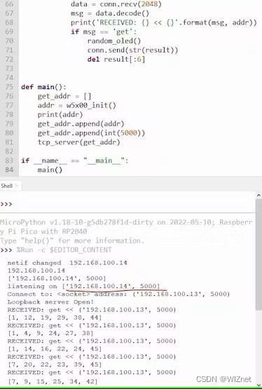 然后您可以从 TCP 服务器(W5100s-pico-evb)接收 6 个随机数。