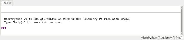 3.查看“Thonny”编辑器底部的 Shell 面板。 你应该看到这样的东西: