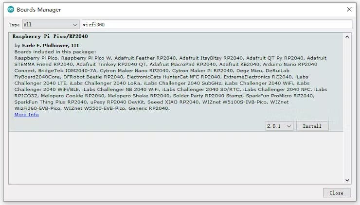 为 Arduino IDE 添加“WIZnet WizFi360-EVB-PICO”支持