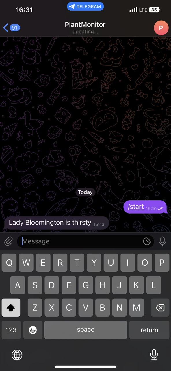 urequests.get("https://api.telegram.org/bot"+API+"/sendMessage?text=Lady Bloomington is thirsty&chat_id="+ID)