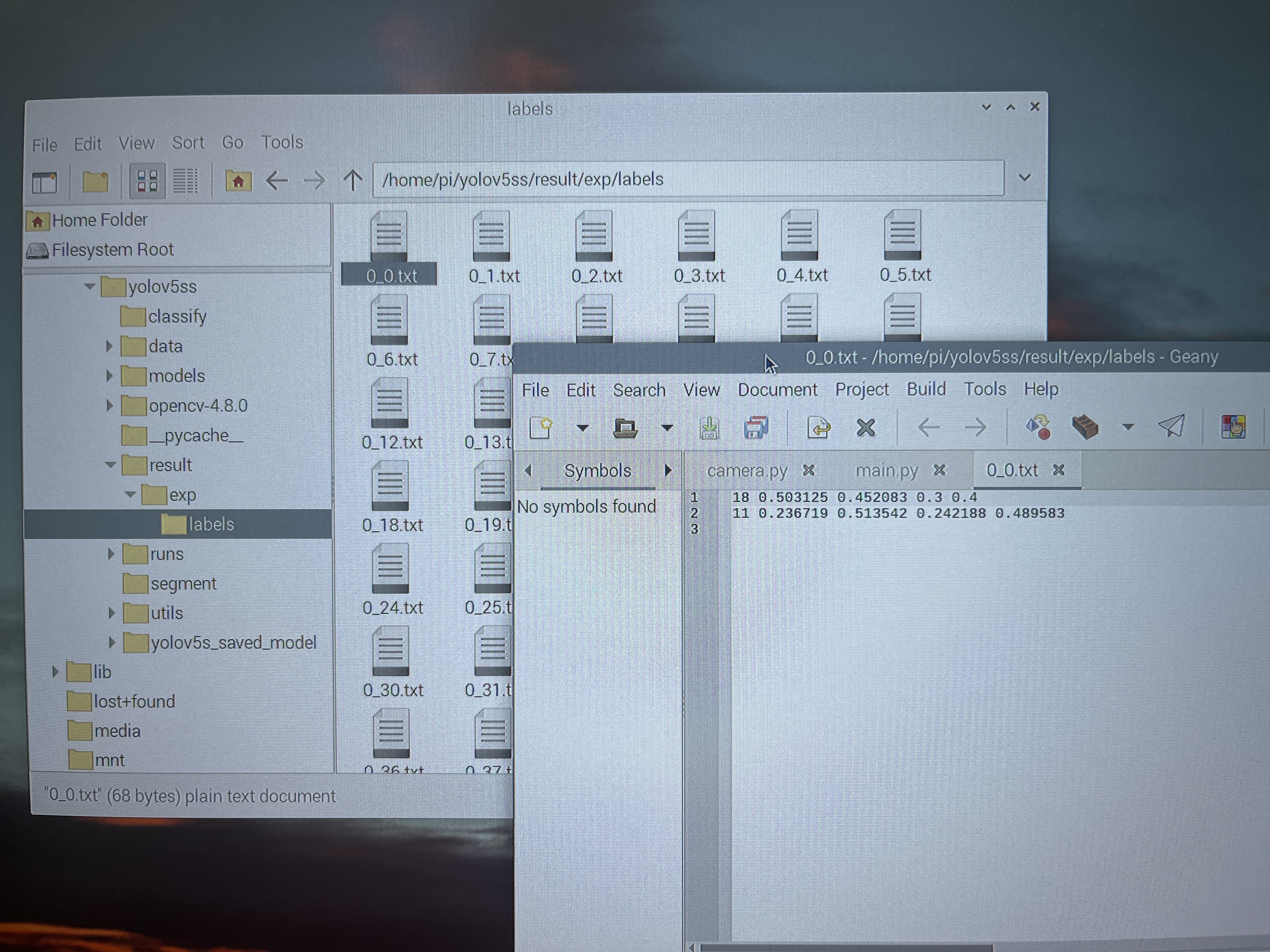 3. 使用 Raspberry Pi 进行对象识别 4. 使用适当的代码创建引用。 我使用了RaspCam,因此我将其设置为“0”(即数据)的RaspCam输入源部分并进行推理。 然后,我仅对参数中通过 save-txt 检测到的对象的类值和边界框坐标进行后处理,并将数据发送到 Pico。