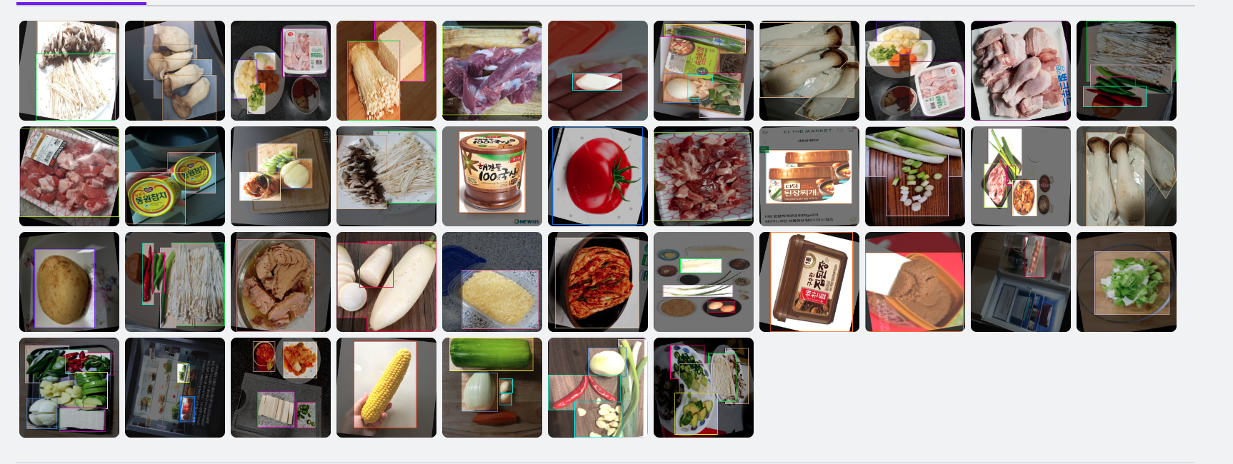 1. 为了创建对象检测模型,我首先创建了一个数据集。 通过爬行,我构建了与食品成分或容器相关的图像数据集。 我花了大约 5 个小时为照片中的每个对象元素绘制边界框。