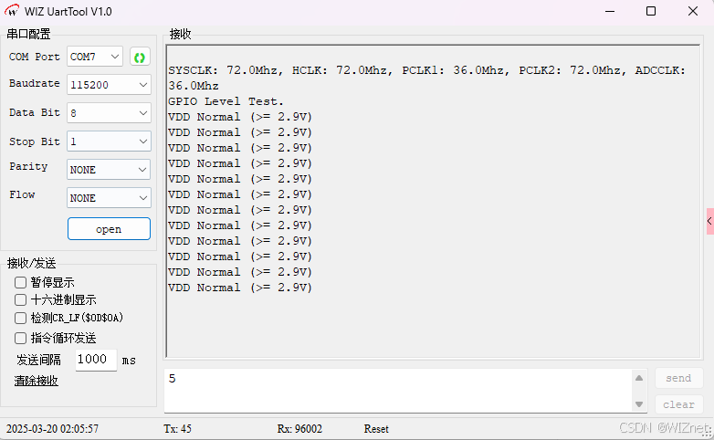 W55MH32芯片主要通过引脚VDD从外部获取电源,在它的内部具有电源监控器用于检测VDD的电压, 以实现复位功能及掉电紧急处理功能,保证系统可靠地运行。