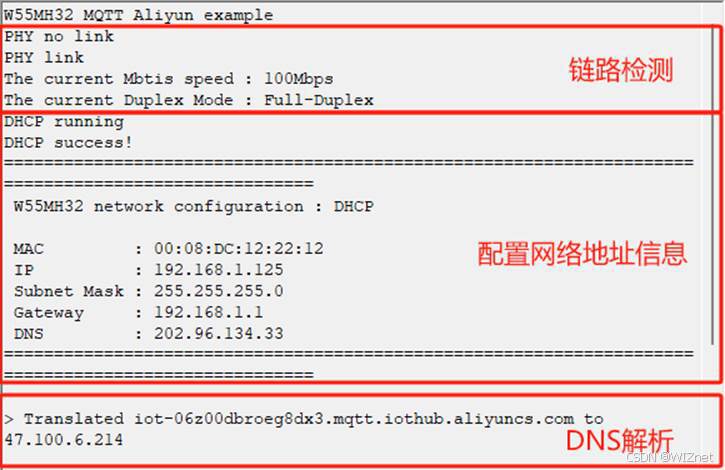 接下来,我们看看在W55MH32上如何实现MQTT连接阿里云,并进行订阅、发布消息以及接收消息处理。