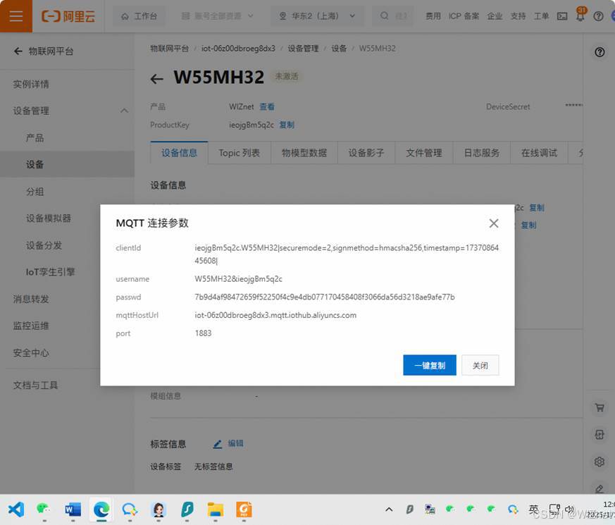 连接参数:在刚刚创建的设备详情页中找到MQTT连接参数。
