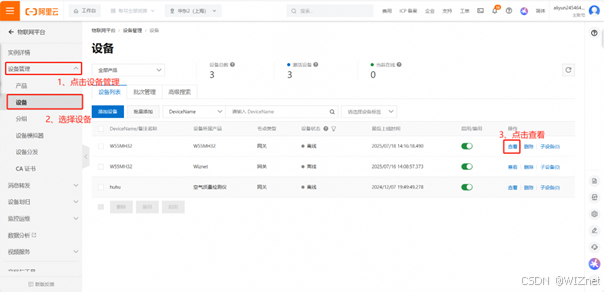 点击设备管理 → 选择设备 → 点击查看