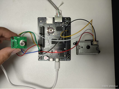 程序烧录完毕,硬件连接完成如下图所示: