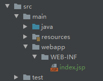 创建webapp 文件及 子文件 WEB-INF(目录层级一定要正确,和java与resources同级) 下面创建 index.jsp