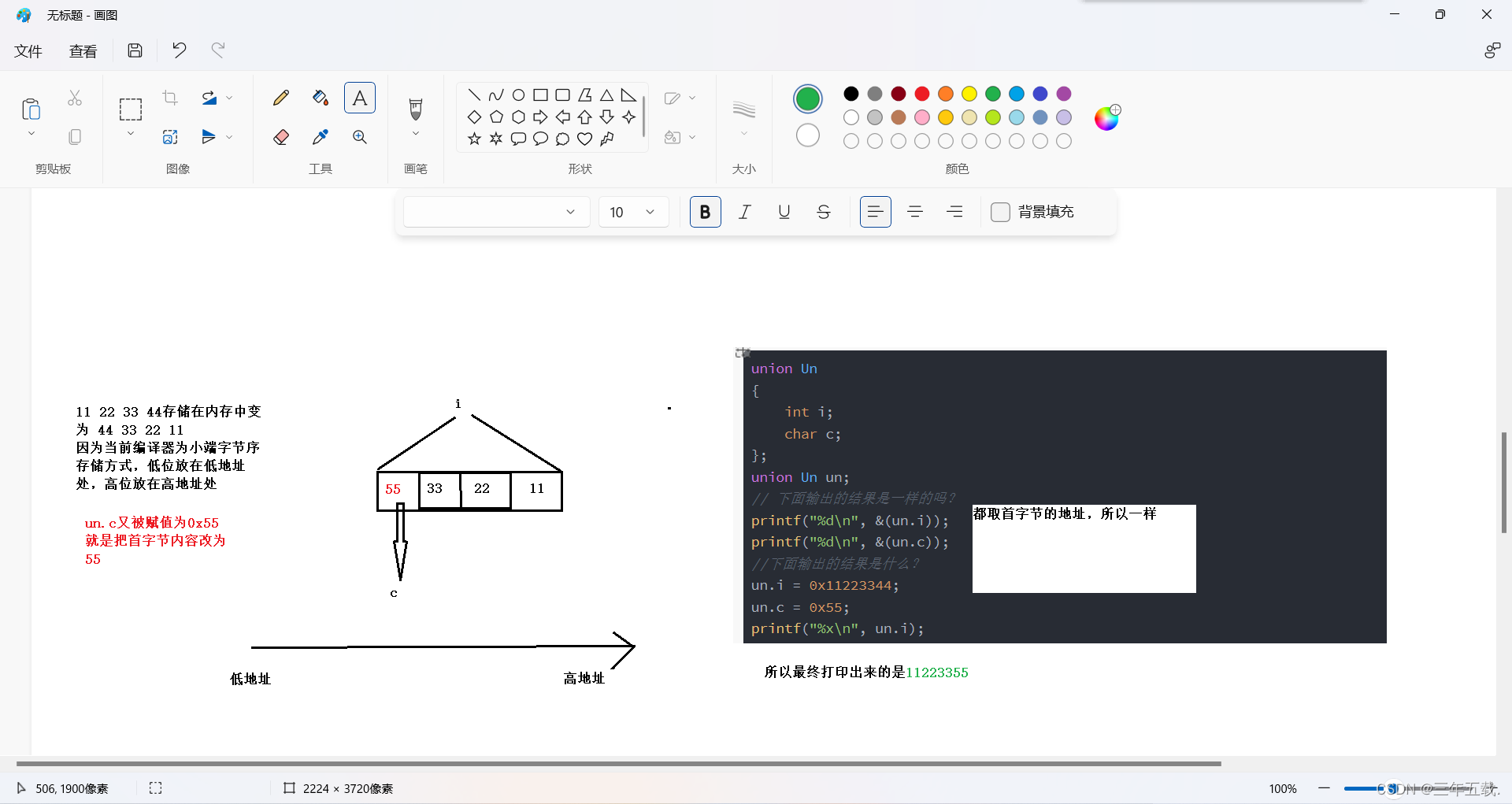 un.i = 0x11223344;