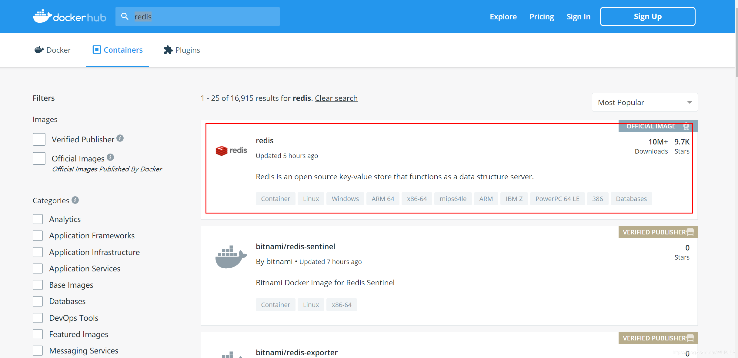 也可以去docker仓库地址搜索 https://hub.docker.com/search
