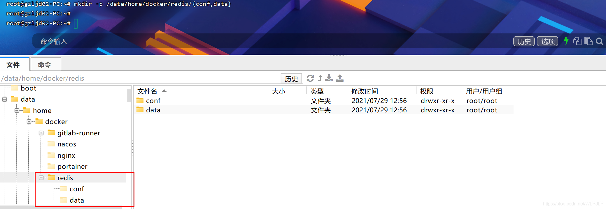 XXX 替换为自己需要存放的目录--》例如我的:/data/home/docker/redis/conf