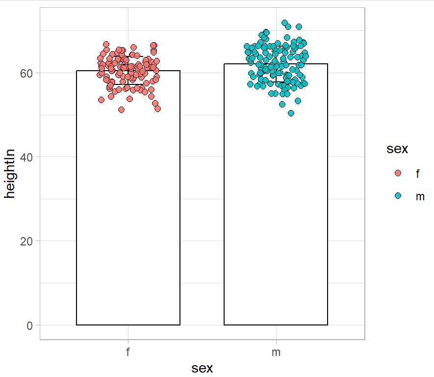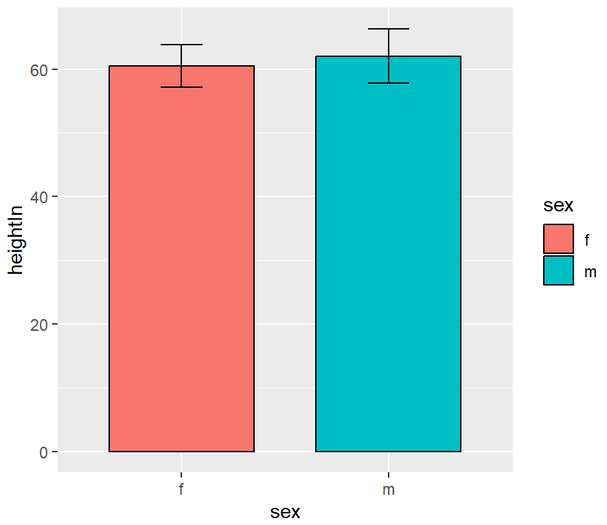 stat_summary(mapping=aes(fill = sex),fun=mean, fun.args = list(mult=1),geom='bar',colour="black",width=.7) +