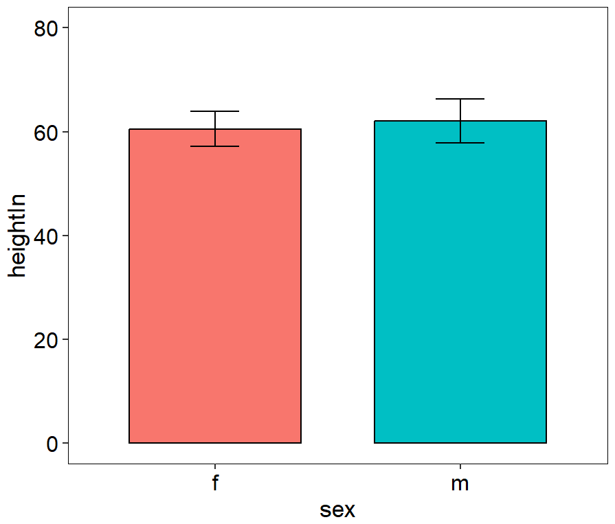 ggplot(heightweight, aes(x = sex, y = heightIn))+