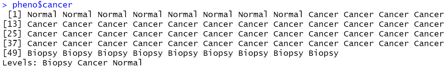 # mod = model.matrix(~as.factor(cancer), data=pheno)