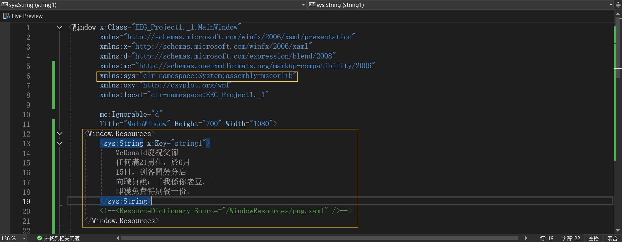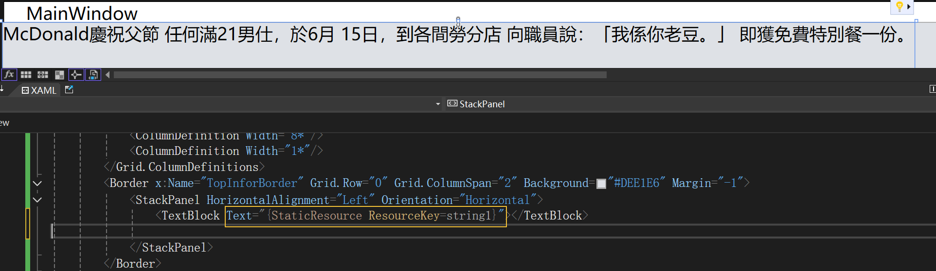 Text=" " 正好需要的类型就是String类型,我们把我们的资源填进去就可以使用了