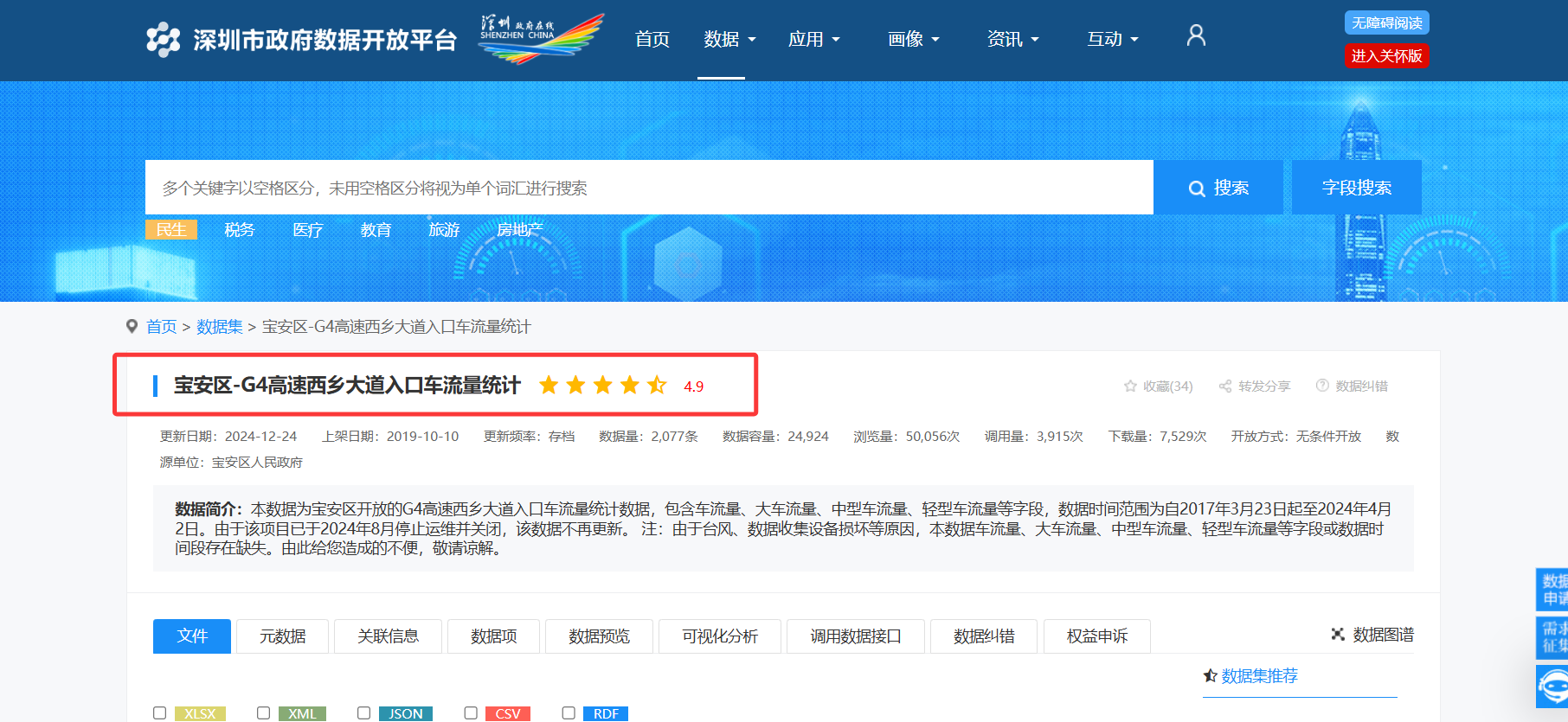 数据集:深圳市政府数据开放平台数据集详情