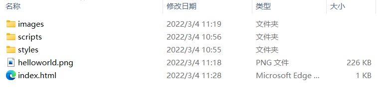 最基本的结构:主页、图片文件夹、样式表文件夹和脚本文件夹。