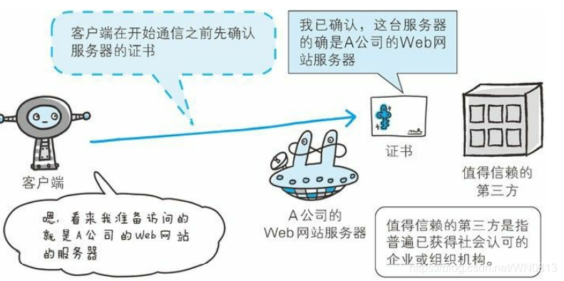 证书由值得信任的第三方机构颁发,用以证明服务器和客户端是实际存在的,通过使用证书,以证明通信方是服务器,也减少了个人信息泄漏的危险性,客户端持有证书即可完成个人身份的确认,也可用于对Web网站的认证环节