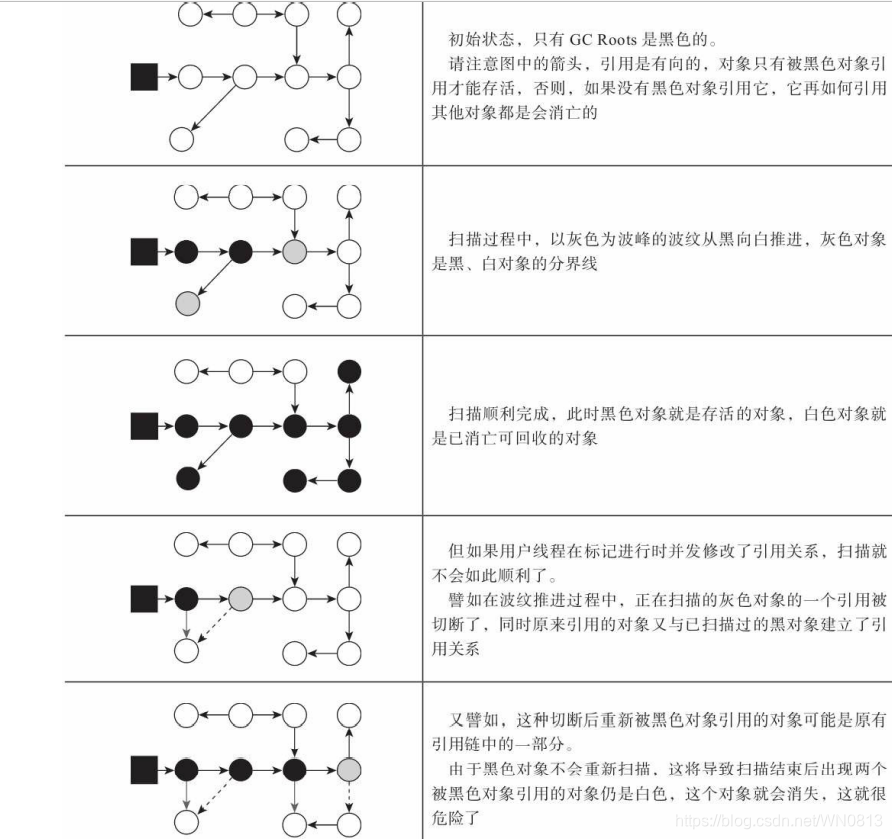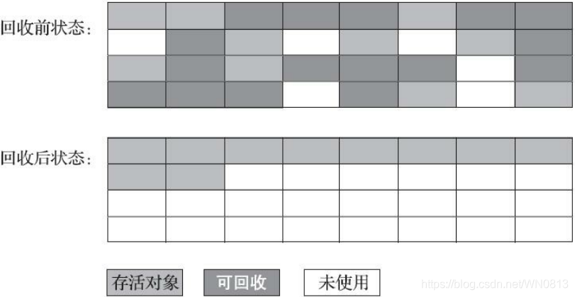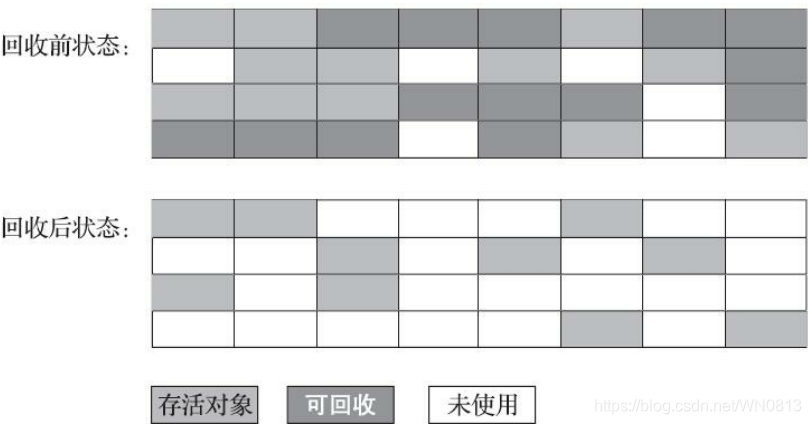 两个缺点:1、执行效率不稳定,如果Java堆中包含大量对象,其中大部分是需要被回收的,这时必须进行大量标记和清楚的动作,导致标记和清除两个过程的执行效率都随对象数量增长而降低