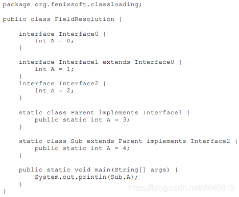 2、否则,如果在C中实现了接口,将会按照继承关系从下往上递归搜索各个接口和它的父接口,如果接口中包含了简单名称和字段描述符都与目标相匹配的字段,则返回这个字段的直接引用,查找结束