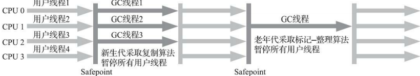 混合收集:指目标是收集整个新生代以及部分老年代的垃圾收集,目前只有G1收集器会有这种行为