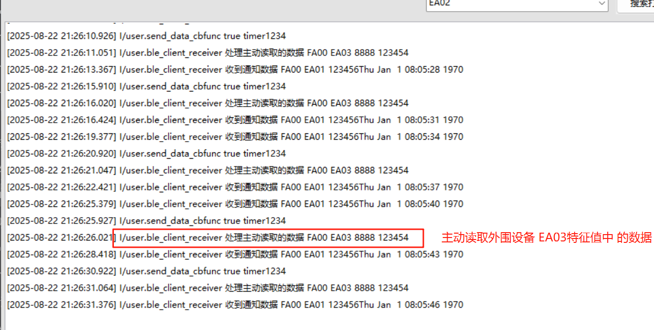 服务 UUID:FA00,特征 UUID:EA03。