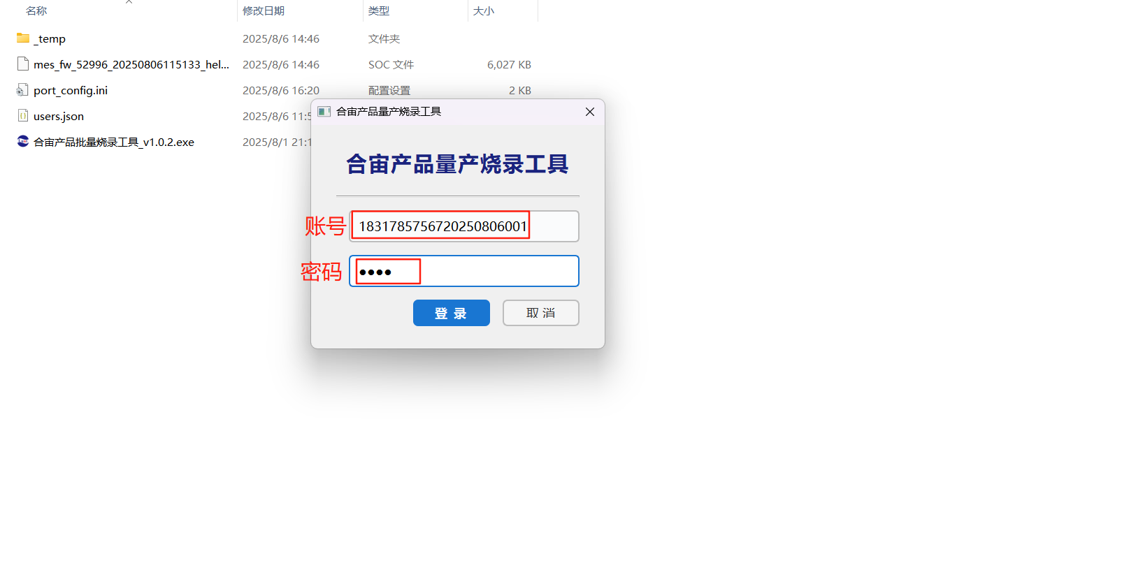 如果此目录下没有该配置文件,就先运行合宙产品批量烧录工具程序,双击运行即可,登录方式跳转本章第四节,也可以先不登录,运行就会有 port_config.ini。