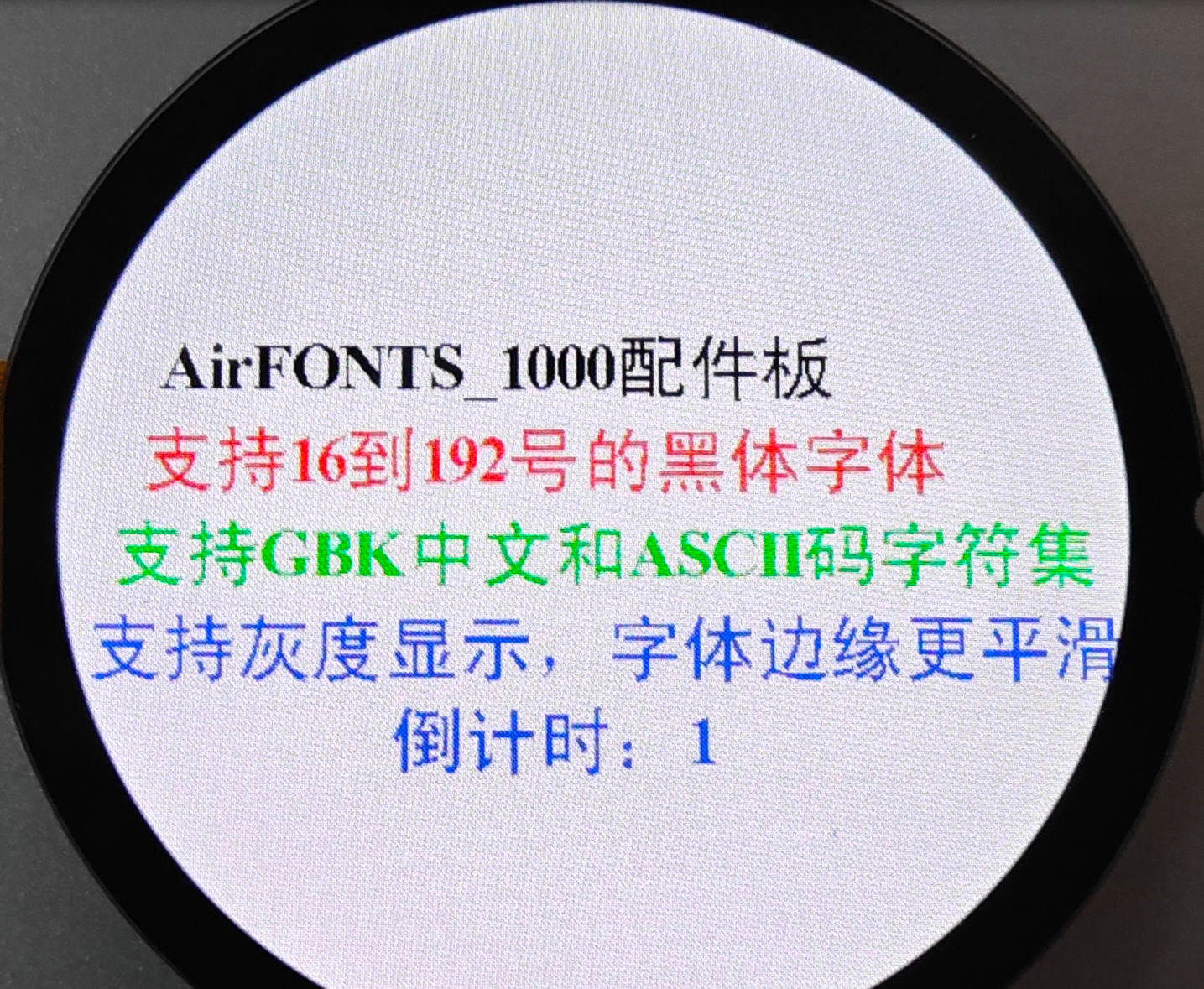 Air8000 核心板 +AirFONT_1000 配件板,从 16-192 矢量字体各颜色字体的显示;