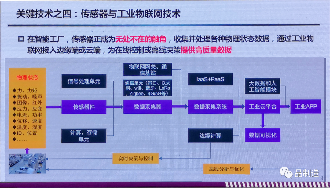 要收集各种设备状态数据少不了传感器的支持,是实现自动检测和自动控制的首要环节。通过工业物联网接入边缘端或者云端,为在线控制或离线决策提供高质量的数据支持。