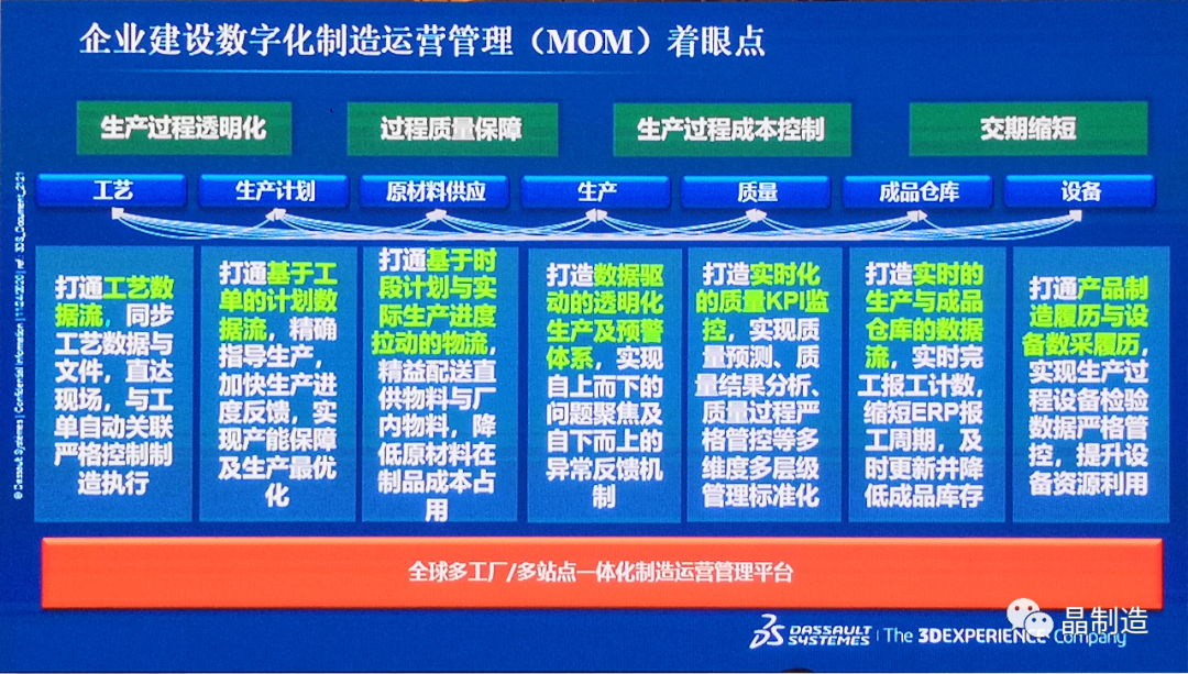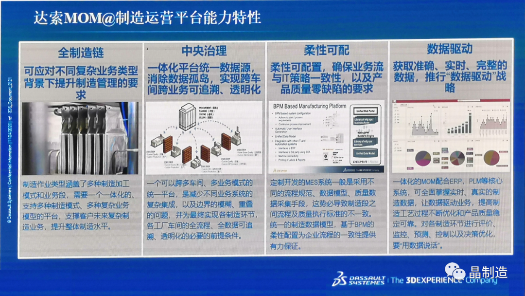 达索在MOM上的应用主要体现了全制造链、中央治理、柔性可配、数据驱动几大特性,将生产与数字化有效的结合起来形成一套较为完善的系统应用。