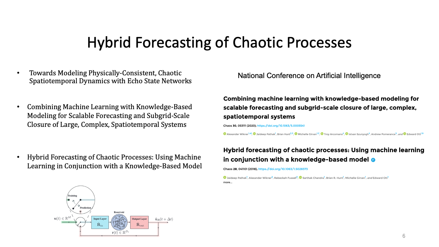 Towards Modeling Physically-Consistent, Chaotic Spatiotemporal Dynamics with Echo State Networks(2021):比较了BaseESN、PhyESN、HyESN
