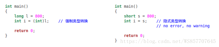 注意:不是所有的强制类型转换都能成功,当不能进行强制类型转换时,编译器将产生错误信息。