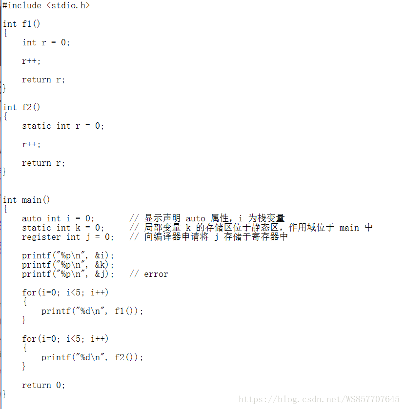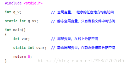 static关键字指明变量的静态属性:static修饰的布局变量存储在程序静态区。从栈到静态区,和全局变量的生命期相同。只是作用域在局部。