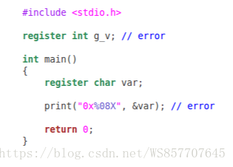 不能用&运算符获取register变量的地址。不是内存地址,寄存器哪有地址。