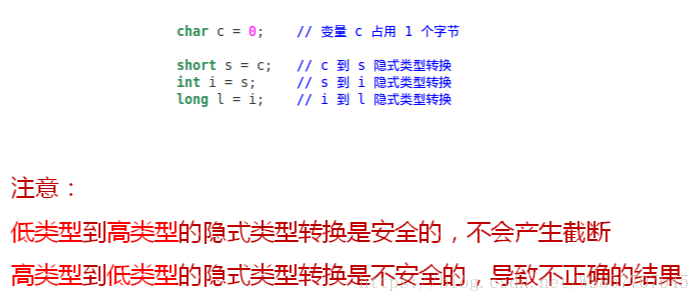 算术运算中,低类型转换为高类型。char和int计算,char会转换为int。