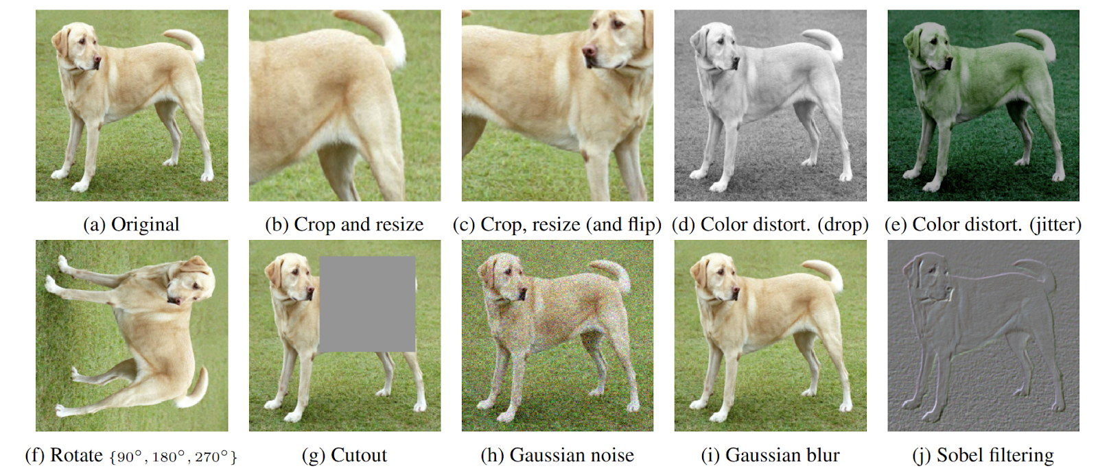 接下来,我们可以看看我们想要应用的具体增强方法。在SimCLR中,选择数据增强是最关键的超参数,因为它直接影响潜在空间的结构,以及从数据中可能学到的模式。让我们先来看看一些最受欢迎的数据增强方法: