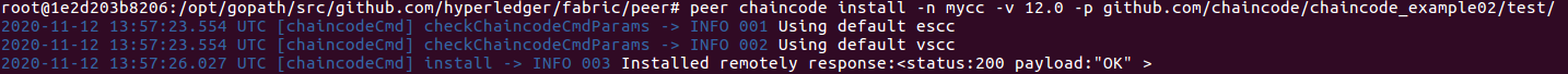 peer chaincode install -n mycc -v 12.0 -p github.com/chaincode/chaincode_example02/test/