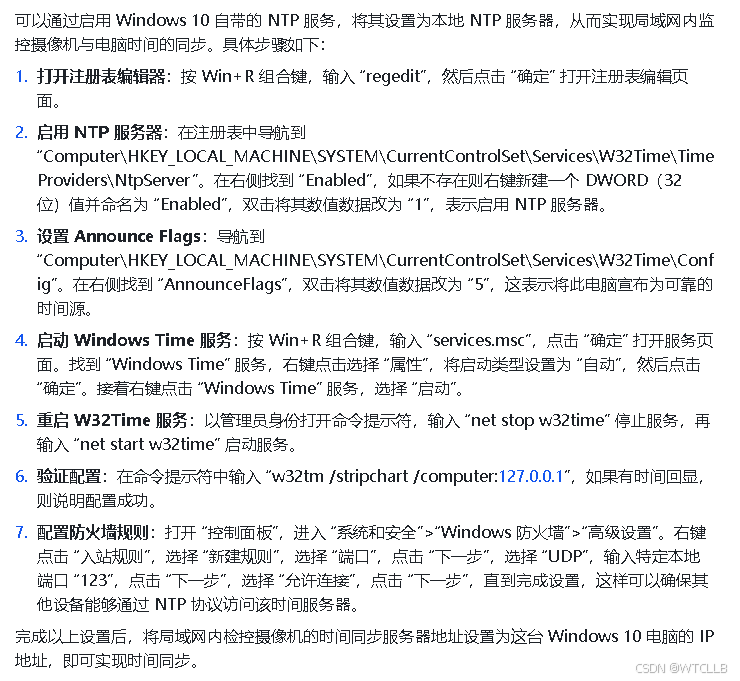 netsh advfirewall firewall add rule name="Allow NTP (UDP 123)" dir=in action=allow protocol=UDP localport=123 profile=any enable=yes description="允许NTP协议通过UDP 123端口"