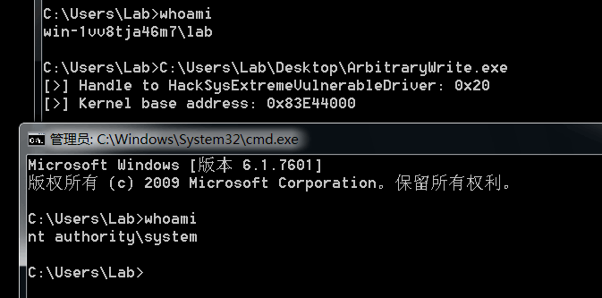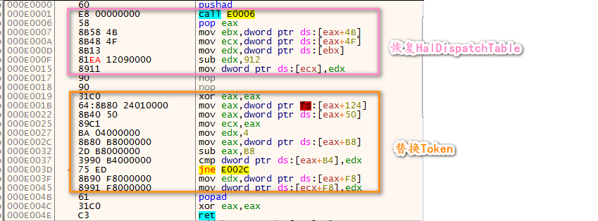 根据上文分析,现已可以实现任意地址写。将nt!HalDispatchTable中函数地址覆盖为Shellcode地址可以实现任意代码执行,具体见下文分析。