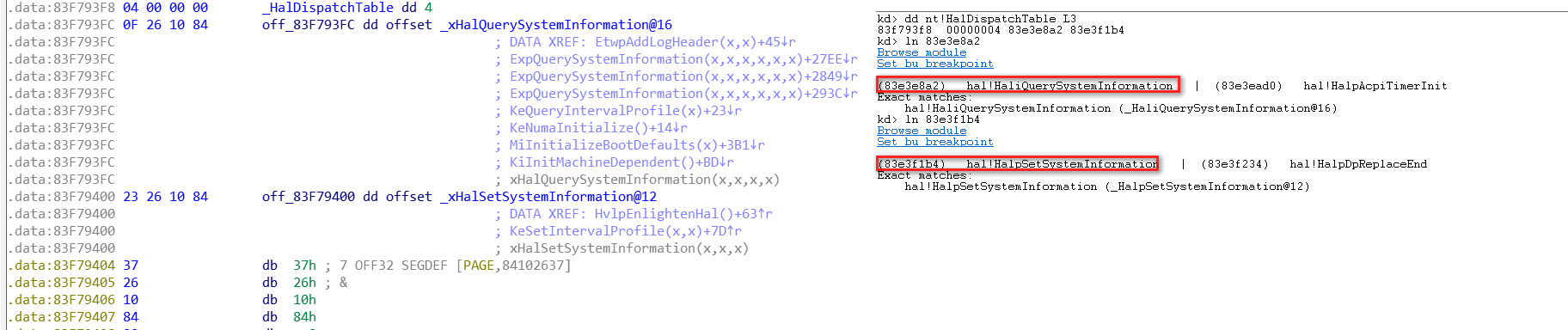 INT32 HalSetSystemInformation_Address = HalDispatchTable_Address + 0x8; //HalQuerySystemInformation_Address Offset 0x912