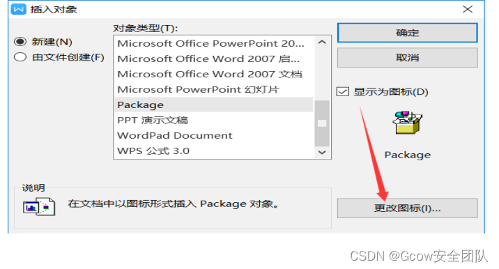 继续重复上面步骤“插入”“对象”“Package”这里不要点确定,我们点击更换图标