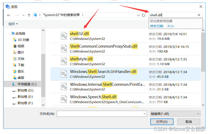 然后搜索user.dll或者shell.dll,这里我们用shell.dll,然后选择shell32.dll