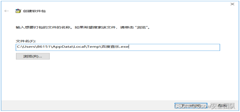 又回到它对象这一步,选定“Package”这里选中,然后选择文件(临时目录里你存放的要捆绑的文件)