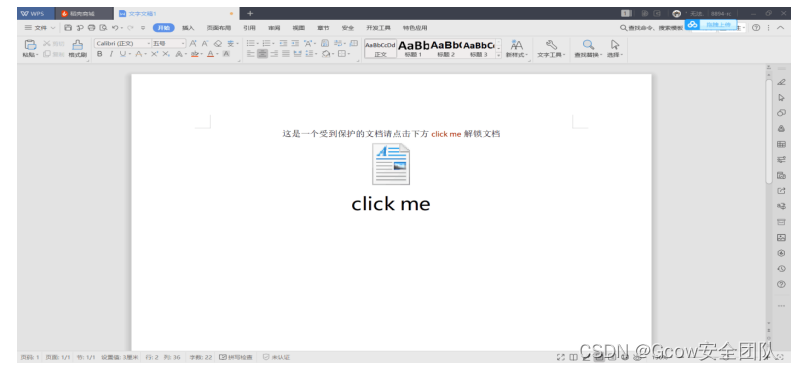 在第一行写文字:这是一个受到保护的文档请点击下方click me解锁文档