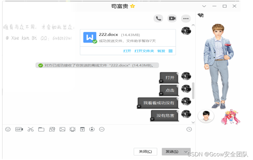 现在我找一个人实验,我把目标看向了团队的师傅,我把做好的文档发给他