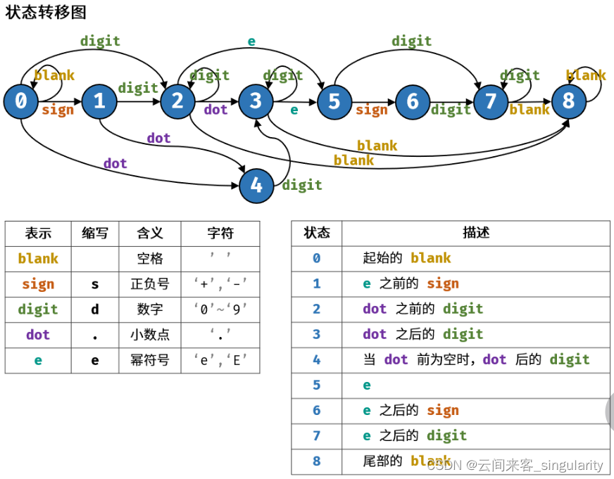 按照字符串从左到右的顺序,定义以下 9 种状态。